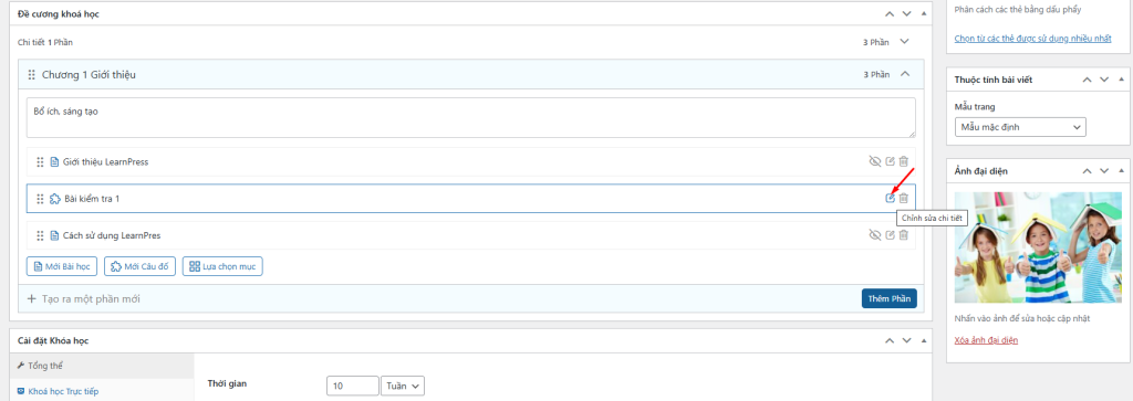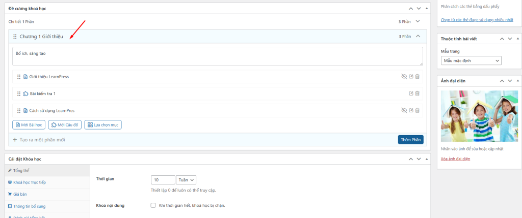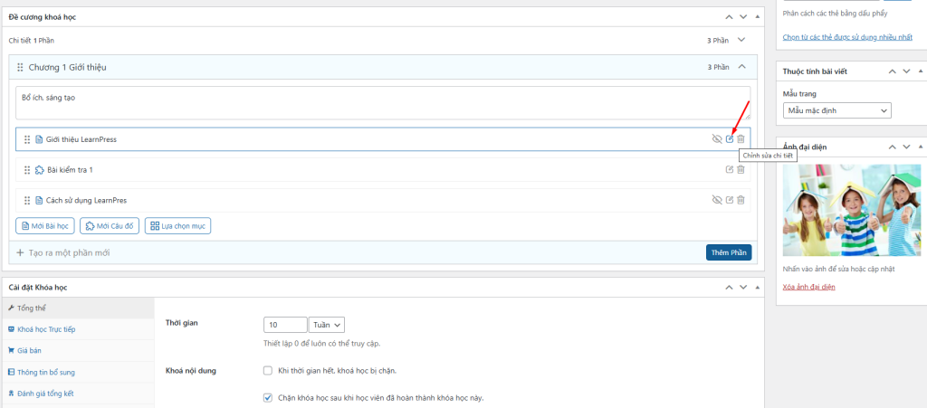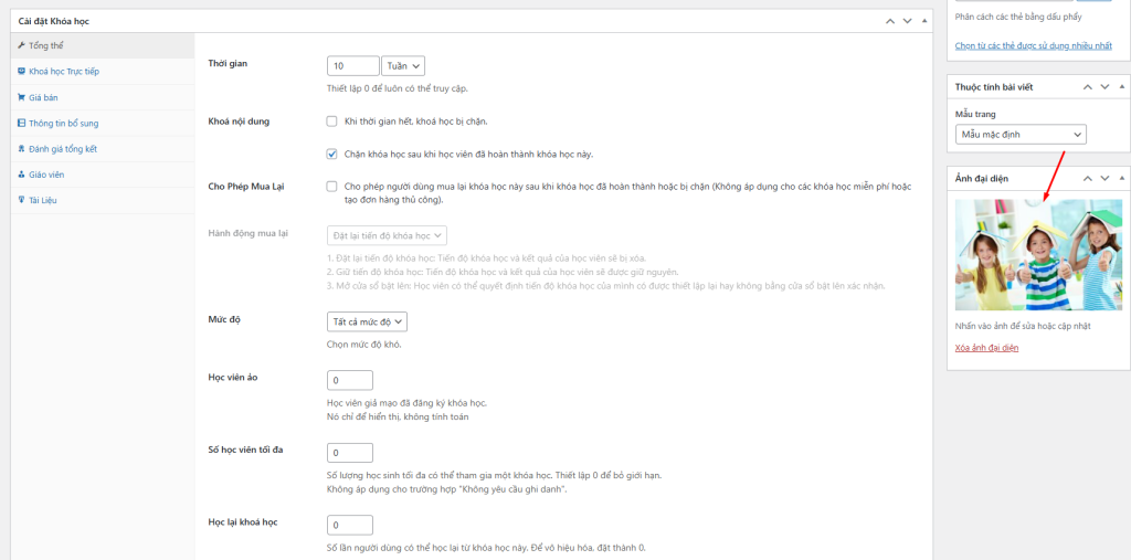 - Ảnh đại diện: Thêm hình ảnh thu hút để làm thumbnail cho khóa học.