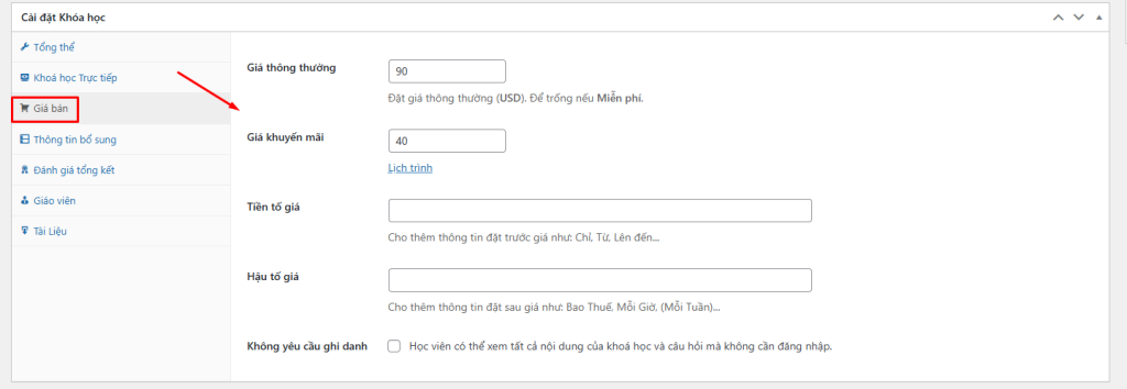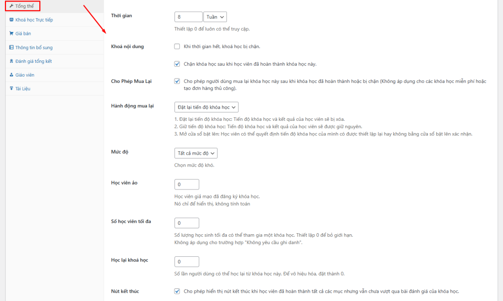 - Cho Phép Mua Lại:Cho phép người dùng mua lại khóa học này sau khi khóa học đã hoàn thành hoặc bị chặn